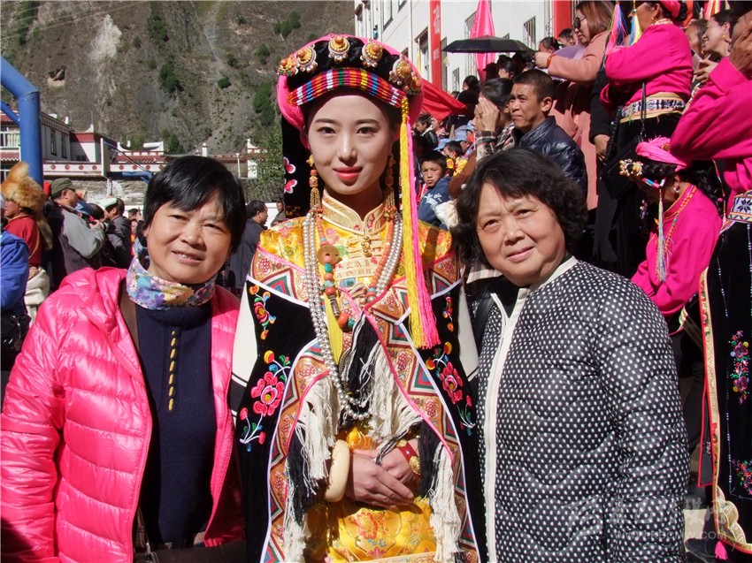 游客與丹巴佳麗合影。
