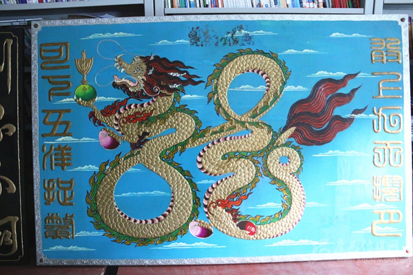走進(jìn)王長(zhǎng)生的工作室,他保存有古董級(jí)的電影放映機(jī)、留聲機(jī)、電話、黑白電視機(jī)、照相器材和吉他、二胡、笛子等樂器應(yīng)有盡有,看到這些古老的“裝備”,記者仿佛走進(jìn)了那段塵封的歲月。2008年,王長(zhǎng)生創(chuàng)作的雕刻畫《昂首蒼穹》,走進(jìn)成都國(guó)際博覽中心,國(guó)家文化產(chǎn)業(yè)設(shè)計(jì)院的兩名專家評(píng)價(jià)說,作品的文化內(nèi)涵和藝術(shù)觀賞性都很高。王長(zhǎng)生解釋說,龍是中華民族的圖騰,龍中之龍?jiān)⒁鉃樯暇盘鞌堅(jiān)拢挛逖笞谨M,反映了中華民族的豪氣。