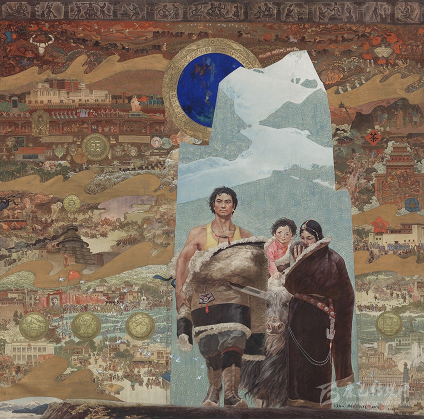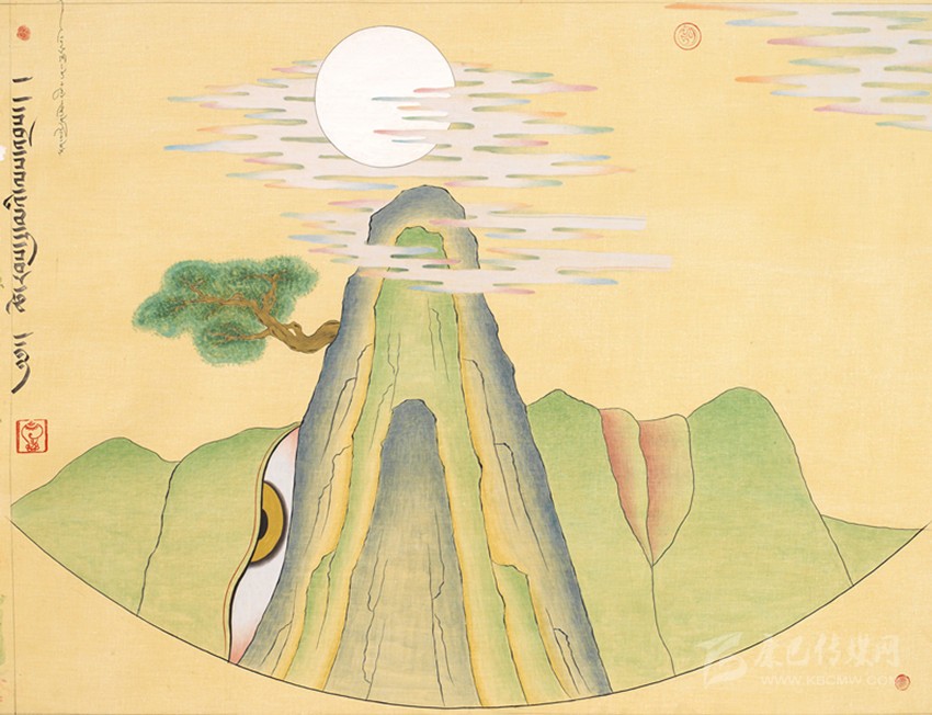 15世紀(jì)以來,唐卡發(fā)展所恒定的兩個(gè)元素:一是平面構(gòu)圖的神佛之境,另一則是吸收大青綠山水精髓。正如DNA鏈的雙螺旋結(jié)構(gòu)一般,使唐卡繪畫在歷史時(shí)空中穿插縈繞,在雪域各地生根開花。到了公元20世紀(jì)初,照片的高度寫實(shí)促使藏地畫家邁出了革新步伐,使得唐卡繪畫逐漸擺脫傳統(tǒng)束縛,開啟了“人”的覺醒。衛(wèi)藏地區(qū)出現(xiàn)了“根敦群培、安多強(qiáng)巴”引入寫實(shí)主義的嘗試,成為當(dāng)今西藏“布面重彩”的先驅(qū)。新中國成立后,內(nèi)地的美術(shù)創(chuàng)作積極影響了三大藏區(qū)的繪畫發(fā)展,上世紀(jì)80年代,四川康區(qū)“甘孜藏畫”肇起,在《嶺·格薩爾王》人文主義的召喚下,《雪山兒女》《唐東杰布》《新概念唐卡》正從歷史深處一路走來。而近年來,安多藏區(qū)則創(chuàng)新出了“藏族祥巴版畫”,祥巴版畫不僅是從材料技法上對(duì)西藏繪畫的豐富,更是藏地畫家們?cè)谧杂X不自覺的求新、求變;甚至在傳統(tǒng)唐卡領(lǐng)域,民間畫師也都在紛紛嘗試將傳統(tǒng)唐卡和現(xiàn)代審美相結(jié)合。這一切,正是唐卡繪畫從傳統(tǒng)走向現(xiàn)代、由宗教博衍至生活的演變過程,在這個(gè)過程里,藏地畫家不僅在畫面的形式和語言上完成了傳統(tǒng)與當(dāng)代的統(tǒng)一,還將西藏的審美特質(zhì)虹化為作品的精神內(nèi)核。這也是唐卡藝術(shù)第二次“從香巴拉到人間”的過程,成為民族文化發(fā)展的新坐標(biāo)。