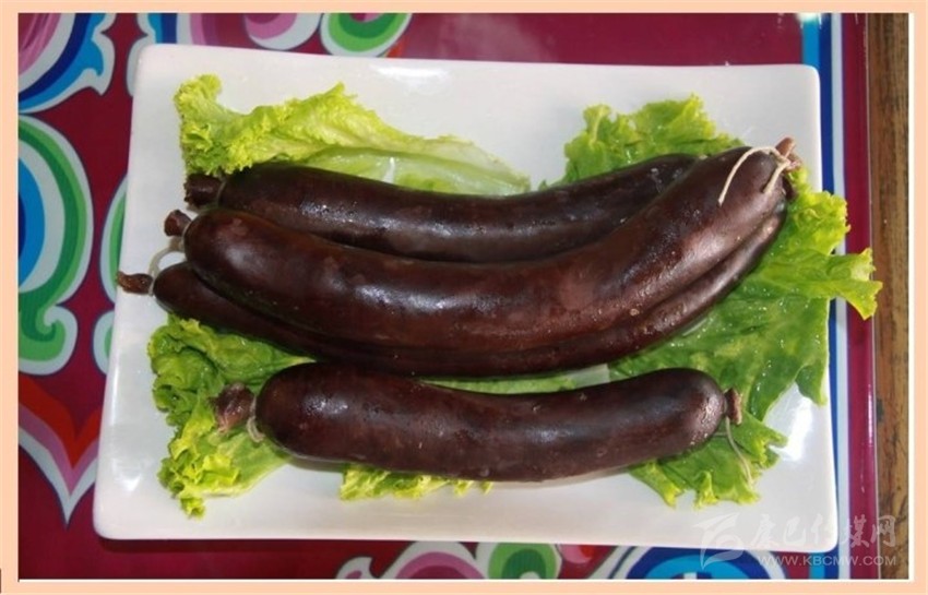 血腸:血腸是將宰殺牲畜的血與玉米面或麥面、蕎面混合在一起,再加以食鹽、花椒面等香料提味,然后將混合物裝進(jìn)洗干凈的牲畜腸里,人鍋煮熟即可。吃的時(shí)候,或蒸或烤,蒸則腸衣柔軟很有嚼頭;烤則腸衣香脆可口。因?yàn)檠c不能長(zhǎng)時(shí)間保存,所以吃血腸的時(shí)間一般在宰殺牲畜的幾天內(nèi)。