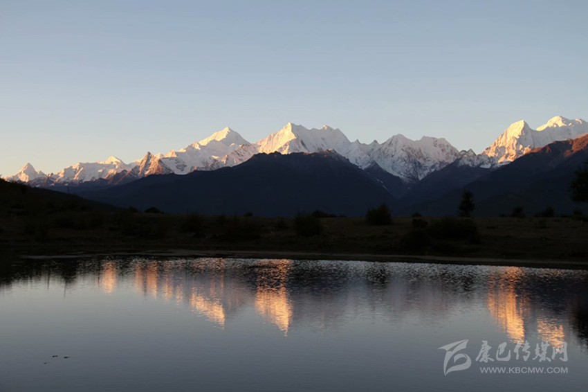 我和張柯在村子里轉(zhuǎn)悠了十多分鐘,也沒有見到一個人。我們只好到田野里瞎轉(zhuǎn)。斜達(dá)村的海拔有3305米,在這里可以俯瞰下面山谷對面的江坡村。因?yàn)楹0胃?,種的都是旱地,地里的青稞才有一尺高。我們從田埂上走過去,一只碩大的母雞帶著10多只小雞唧唧咕咕的在田地里覓食。我們走到村邊山頭上,放眼望去,對面的卡瓦格博群山放射著萬道金燦燦的霞光,盡顯山之王者的威儀。下面的山谷里,蘭色的炊煙如帳幔般飄拂,好一副山野美景!