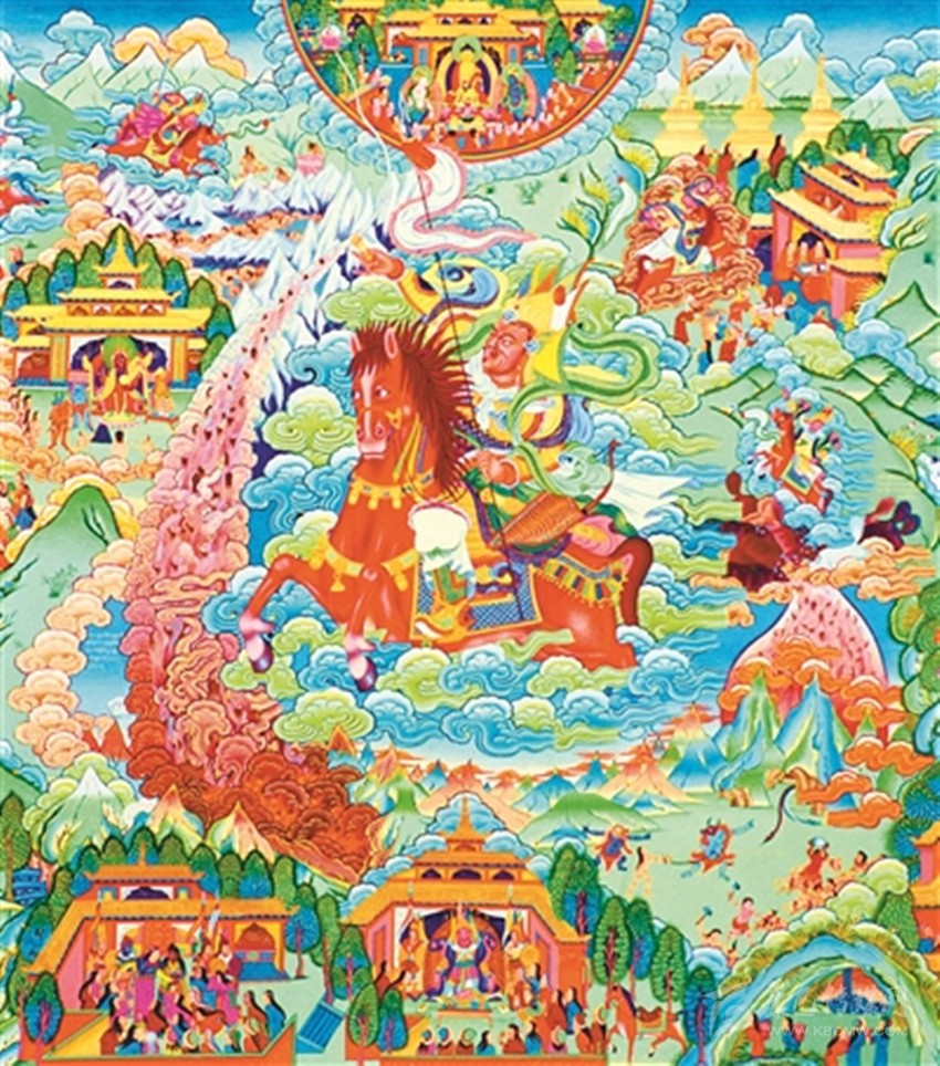 “中間世上各種紛爭(zhēng)”,講的是格薩爾從誕生到升天的全過(guò)程,這一部分,構(gòu)成了格薩爾的全部英雄業(yè)績(jī),也是史詩(shī)的主體部分。