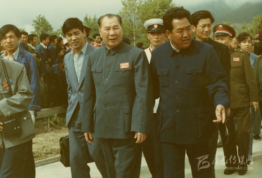 楊成武(正中)參加飛奪瀘定橋紀(jì)念碑奠基儀式。