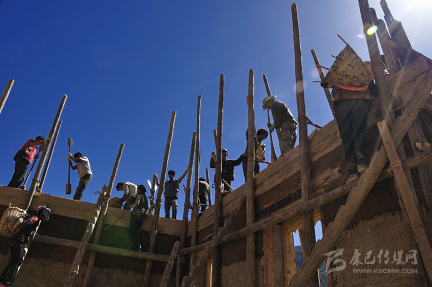 鄉(xiāng)城白色藏房是一種通過版筑營造工藝修建的夯土建筑?!佰裕╦i)”是中國古代的一個量詞,指一種借助木框夯實土坯的單位,一框為一墼。也指一種古老的生土建筑營造工藝。戰(zhàn)國《孟子》:“舜發(fā)于畎畝之中,傅說舉于版筑之間”。相傳傅說是商王武丁時期出身于夯土版筑工匠的賢臣。也就是說除了“墼”早在商代中國就已經出現(xiàn)了版筑工藝的夯土技術。鄉(xiāng)城白色藏房正是這種版筑夯土建筑工藝的代表之一。夯土這種古老的建筑工藝,在現(xiàn)代伴隨著工業(yè)文明的發(fā)展,已經逐漸淡出了主流建筑營造的范疇。但其在生態(tài)和文化方面的價值仍值得我們去關注。正是在夯土建筑工藝在世界走向沒落和消亡之時,在橫斷山脈的深處,中國西南部的四川省鄉(xiāng)城縣的谷地中,卻因為夯土建筑具有就地取材、施工簡易、冬暖夏涼、造價相對低廉等特點,以鄉(xiāng)城白色藏房為代表的夯土建筑營造工藝得以完整保留,且工藝技術還有了進一步的提高。是這種建筑營造工藝在中國規(guī)模最大的遺存。