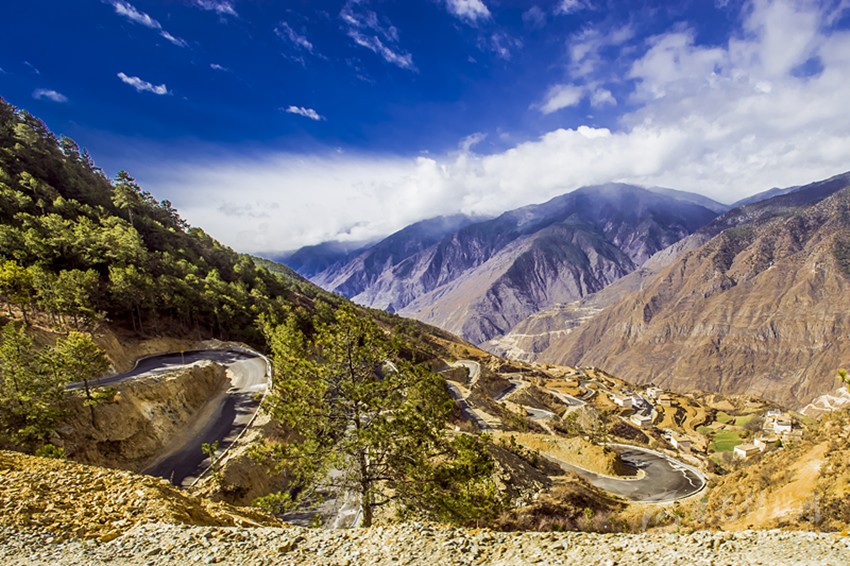 如今,所有鄉(xiāng)村通了硬化路,橫跨在金沙江上的十余座跨江大橋氣貫如虹,天塹變通途。過(guò)去我們下鄉(xiāng)時(shí),從日雨到曲雅貢,只有一條從因都?jí)伪澈蟮陌肷窖?。蒼茫大山,路上幾乎看不見(jiàn)一顆大樹(shù),也找不到一滴水源。從山腰看江畔的因都?jí)危挥袃蓱羧思?,幾株綠樹(shù)總令焦渴難耐的我們望“綠”興嘆!下山走到金沙江邊,熾烈陽(yáng)光從河灘上反射,火辣辣照在臉龐和皮膚,熱浪令人窒息,感覺(jué)目的地遙不可及。現(xiàn)今,干部下村完全不需要走路,走路下鄉(xiāng)對(duì)年輕人來(lái)說(shuō)簡(jiǎn)直不可思議。公路像一條飄帶環(huán)繞山間,使散落在峽谷中的村寨愈發(fā)展現(xiàn)出欣欣向榮的新風(fēng)貌。