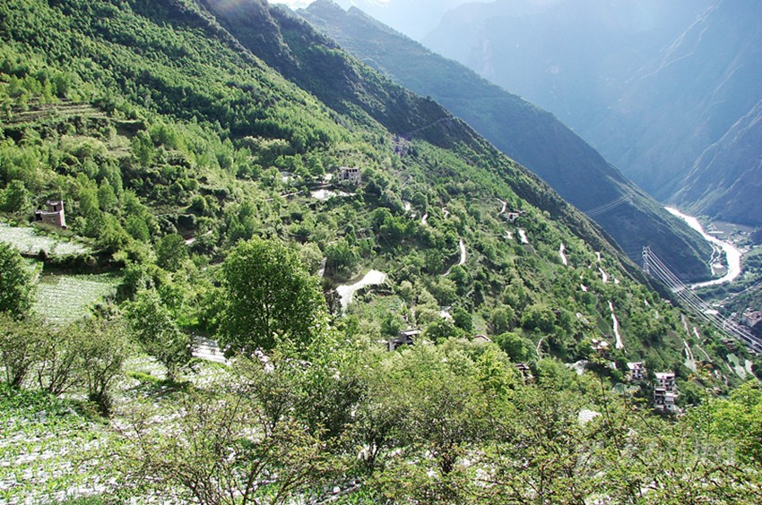 老家的中學(xué)地處峽谷之中,一條小溪從學(xué)校后面的峽谷中奔涌而出。由于這條溝谷里又有九條山脊,因此又稱為九道溝。各條小山谷里的溪流匯合之后,竟然形成了與河流大小相近的水流。當(dāng)流經(jīng)中學(xué)旁時(shí),狹窄的溝谷使得溪流狂躁起來(lái),撞擊著兩岸的山崖,翻卷著浪花,發(fā)出震耳欲聾的聲響。最后匯入小金川河之中,向著遠(yuǎn)處的大渡河奔去。