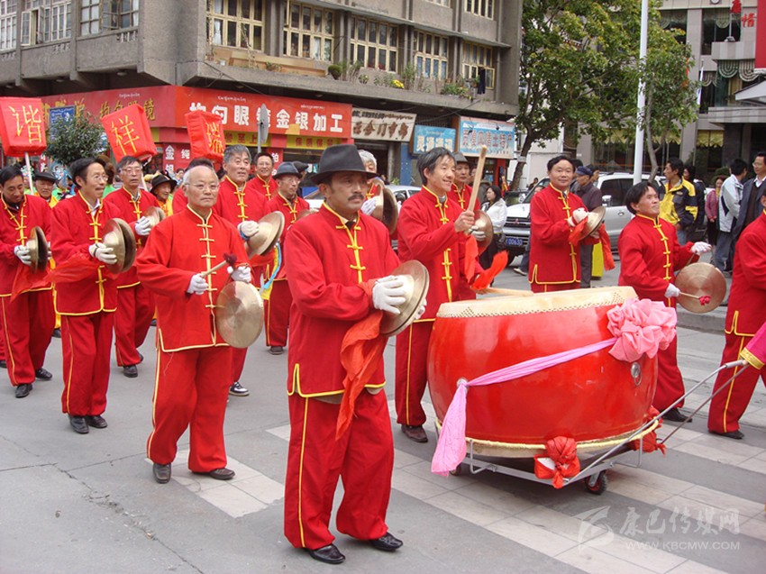 大年三十夜,山谷中的康定城廓鼓聲震天,“鬧山鼓”將過年的氣氛推向了高潮。當年“鬧山鼓”打得最好的是一位人稱“韓八爺”的陜西漢子,后來“韓八爺”打不動了,由另一家陜西戶縣來的姓徐的人家接替。徐家老父打不動了又傳給了徐大哥。到徐大哥操鼓槌時,參與打鼓的已不再全是陜西人了,康定熱愛這鼓聲的藏、漢、回族漢子也參與進來,成了多民族的鼓隊。這原本屬于陜西戶縣的“老陜鼓”,如今在戶縣卻打不全了。徐大哥健在時說,“鬧山鼓”鼓譜共有20多節(jié),那年他回戶縣探親,戶縣的鼓匠最多只能打一半的鼓譜,而在康定,全套的鼓譜卻被這支多民族的鼓隊流傳了下來。