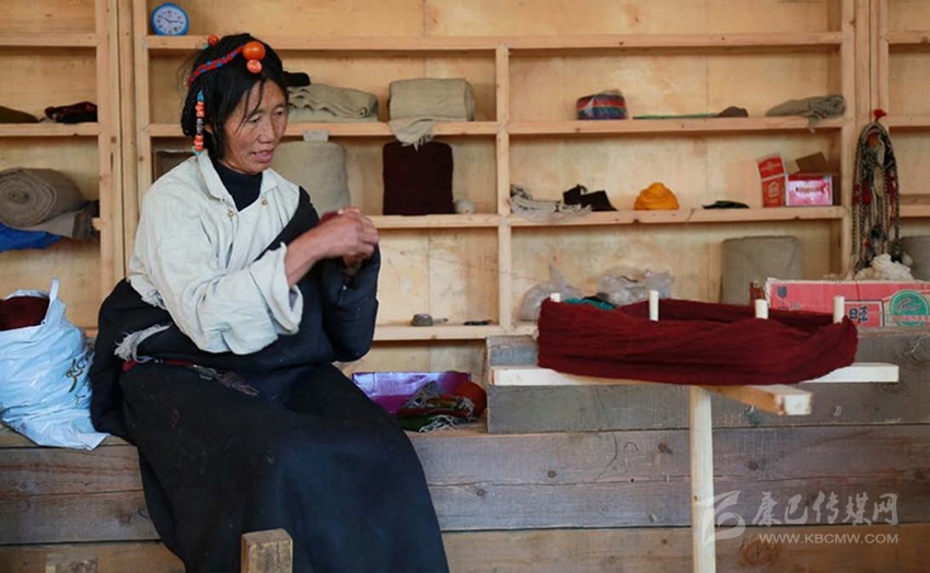 “庫”,這層細(xì)軟的底絨被表層粗糙的牦牛毛所覆蓋,且本身細(xì)長彎曲,無法用剪刀方便地剪下,故而只能手工采集。從每年春天采集牦牛、羊絨,到捻成線,到染成不同顏色,再到織成一匹布,整個(gè)過程全由扎西巴姆和她帶領(lǐng)的幾個(gè)藏族婦女手工完成,全部學(xué)會這門技術(shù)需要3—4年,現(xiàn)在麥宿只有4人全部掌握。但與這費(fèi)力耗時(shí)的工藝形成殘酷對照的是,手工織物在機(jī)器快速生產(chǎn)的現(xiàn)代社會,市場經(jīng)營可謂舉步維艱。雖然工巧明系創(chuàng)立的平臺專門收購編織班做出來的產(chǎn)品,但購買的人并不多,編織班創(chuàng)建至今,所得收益只夠勉強(qiáng)維持平衡。