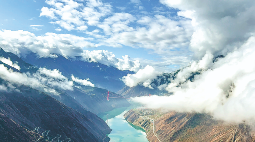 遠(yuǎn)眺雅康高速瀘定大渡河大橋。