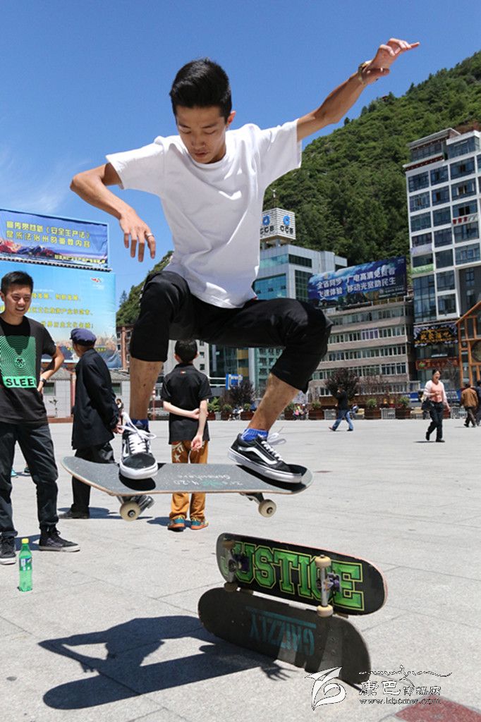 提到極限運(yùn)動(dòng),你首先會(huì)想到什么?直排輪、空中沖浪、跑酷、攀巖……它們中很多都由滑板延伸而來,因此滑板又被稱為極限運(yùn)動(dòng)的“鼻祖”。在康定,有這么一群年輕人,他們每到暑假,每天都會(huì)在情歌廣場(chǎng)集合,踏上滑板、踩上輪滑挑戰(zhàn)一個(gè)個(gè)“不可能的任務(wù)”。一身肥大的T恤牛仔,夸張的金屬耳釘、項(xiàng)鏈、手鏈、戒指,和著動(dòng)感十足的Hip-Hop音樂,踩著滑板在障礙之間穿梭,間或穿插幾個(gè)高難度花式動(dòng)作,引得觀眾此起彼伏地喝彩尖叫……這是很多人印象中滑板、滑輪小子的形象。但當(dāng)賀淼、謝明洋、陳凱他們出現(xiàn)在記者面前時(shí),簡(jiǎn)單的裝束真有點(diǎn)讓記者意外。他們的身上幾乎不見任何首飾,普通的T恤加瘦版牛仔褲,還有頭上簡(jiǎn)單的鴨嘴帽, “Hip-Hop” 前衛(wèi)的影子并不明顯。