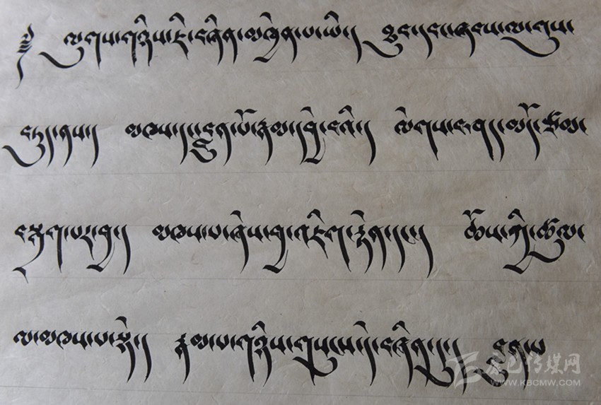 談到藏文書(shū)法作品,昂旺曲批喜歡用諸如“淳樸、干凈、善良”的字眼形容藏文書(shū)法作品的風(fēng)格?!耙粋€(gè)字就是一個(gè)人,字有肉也有骨頭?!边@是昂旺曲批對(duì)“德珍派”書(shū)法的理解,在昂旺曲批眼中,藏文字都是有生命的,需要寧心靜氣方能通過(guò)手中的筆尖,彼此呼應(yīng)。