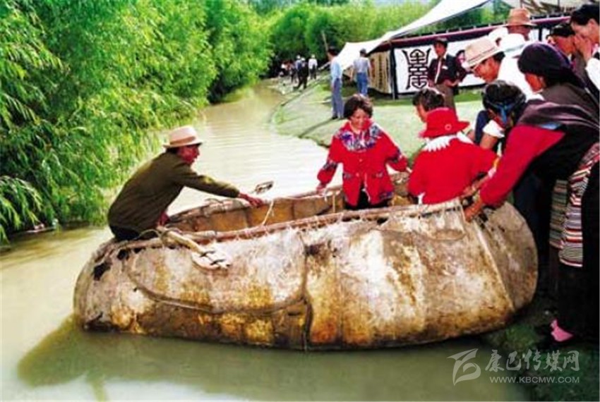 近代牛皮船側(cè)面看是梯形的,下大上小,用4張牛皮縫制,船底面積比早期船大一倍,一只船一次約載七八個(gè)人。牛皮船可靈活組合,如果乘客人數(shù)較多又不愿分開過江河,也可把幾只牛皮船捆綁在一起,這樣人和東西就可以一起過江了。當(dāng)然,這時(shí)候船夫也需要添幾個(gè)幫手。一個(gè)牛皮船只有數(shù)十斤重,一個(gè)人背著還可以走遠(yuǎn)路。不用時(shí)則支在駐地附近晾干。至今在雅魯藏布江和拉薩河上還能見到牛皮船的影子,在偏遠(yuǎn)的鄉(xiāng)村,只要有河,牛皮船仍然是人們渡河的工具。