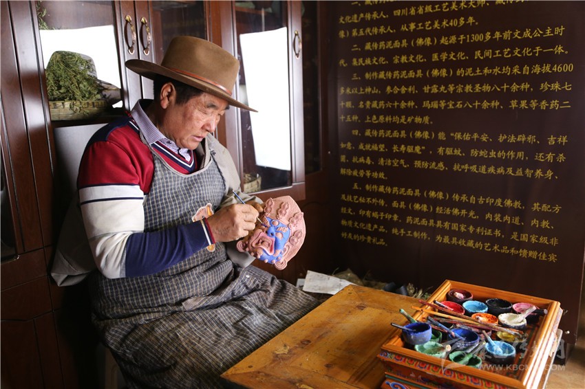 “當(dāng)?shù)赜惺裁春猛娴摹⒑每吹??”在轉(zhuǎn)角的尼恰咖啡館吃過早餐后詢問,“民居、微型綠道、藥泥面具,制作面具的師父是國(guó)家級(jí)非遺傳承人…”。驅(qū)車來到藥泥面具的制作地,就在縣城邊上,我第一次見到藥泥面具的非遺傳承人四龍降澤時(shí),他正在自家房屋旁邊忙著修建藥泥面具的綜合樓,褲腿沾滿了灰塵,這與我想象中不食人間煙火的大師完全不一樣。