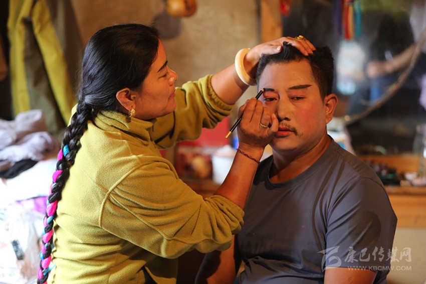 從此,藏戲對他來說,成了修身養(yǎng)性的一種方式。扮演小丑,在舞臺中間插科打諢,引來觀眾笑聲不斷,他感到欣慰。演正角,在唱腔里融入自己對角色的理解和感情,覺得內(nèi)心充實。對自己的父母和老丈母,他沒有多的言語,只是切切實實地去盡孝心。藏戲里男女主角對愛情的忠貞不渝也感染了西繞,妻子去世后,33歲的他對佛教信仰更加虔誠,立誓不再續(xù)弦娶妻。他體悟出:唐東吉布為募善款修橋而創(chuàng)立藏戲,這是大愛。藏戲不比弦子,弦子是生產(chǎn)生活中的大眾化娛樂,屬于生活與情緒的直觀體現(xiàn);藏戲則是精神上的“信望愛”,宗教的神與人具像化溝通,敬神、渡人、祈愿,因此藏戲是神圣的。基于這種思考和領悟,今年的“雅索節(jié)”,正值老丈母病逝沒幾天,本來是要絕對禁止歌舞的,但居拉活佛圓寂前的話猶在耳畔,他還是去跳了。他相信,真正懂藏戲的人會理解。