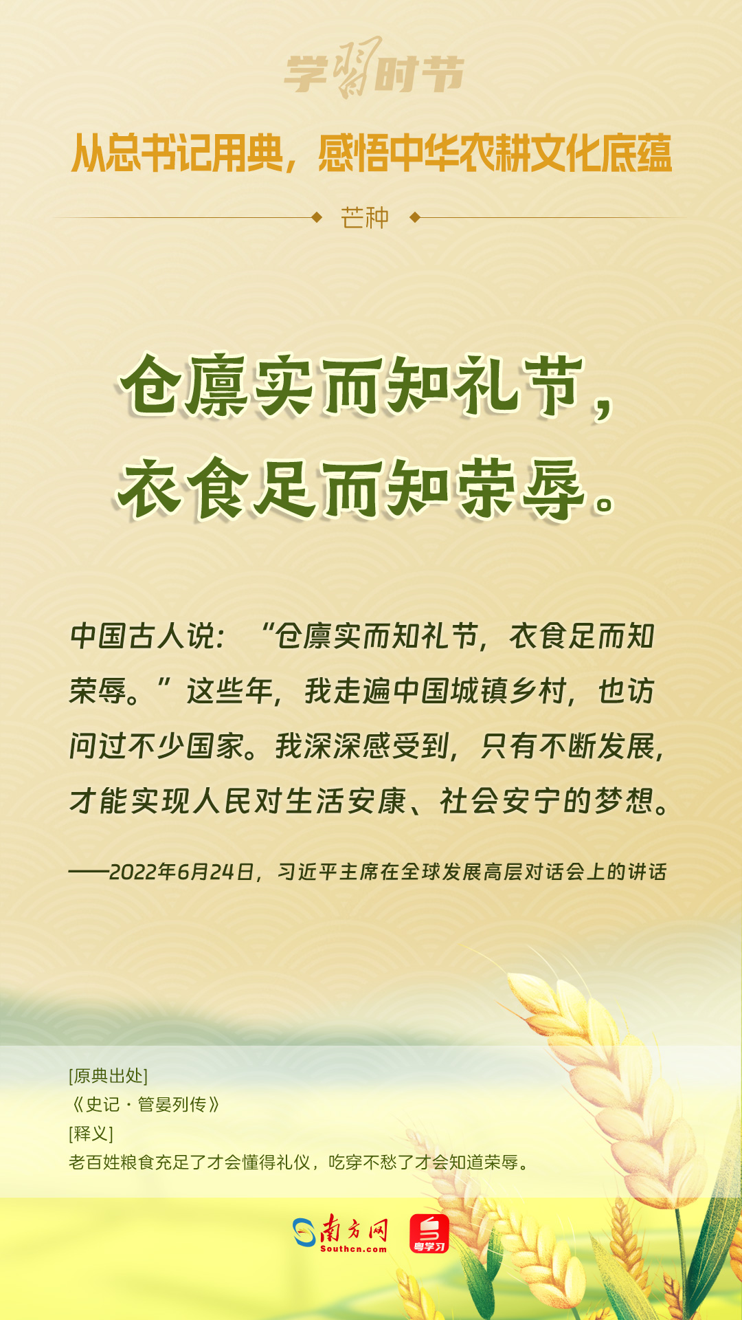 6月5日迎來芒種節(jié)氣,讓我們一起重溫習近平總書記引用過的關于農(nóng)耕的經(jīng)典名句,共同領略中華優(yōu)秀傳統(tǒng)文化的風采與魅力。