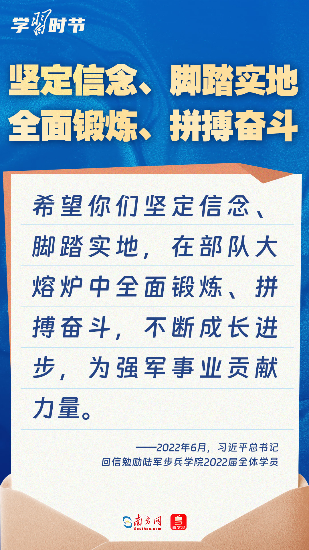 強(qiáng)國必須強(qiáng)軍,軍強(qiáng)才能國安。黨的十八大以來,習(xí)近平總書記始終牽掛一線官兵冷暖,高度重視我軍院校教育和人才培養(yǎng)工作,多次給部隊官兵、軍校學(xué)員等回信。讓我們一起重溫總書記的諄諄寄語!