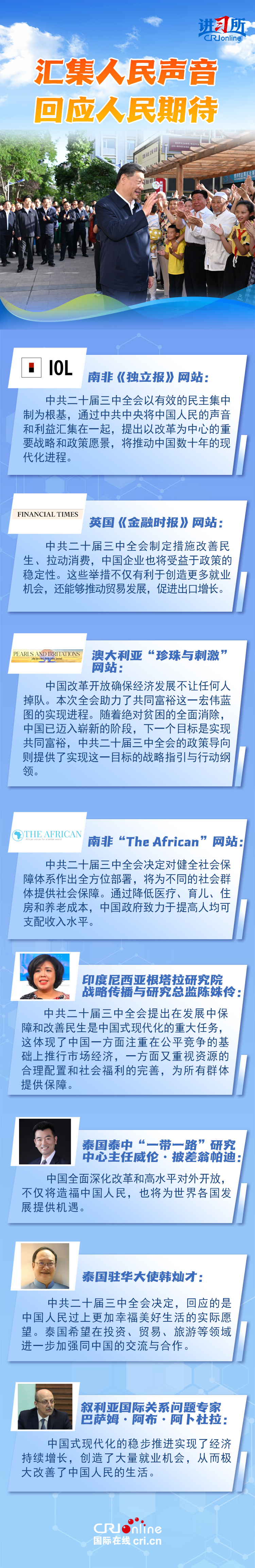 2024年7月18日,黨的二十屆三中全會(huì)通過(guò)《中共中央關(guān)于進(jìn)一步全面深化改革、推進(jìn)中國(guó)式現(xiàn)代化的決定》,將“堅(jiān)持以人民為中心,尊重人民主體地位和首創(chuàng)精神,人民有所呼、改革有所應(yīng)……”列為進(jìn)一步全面深化改革的六大重要原則之一。