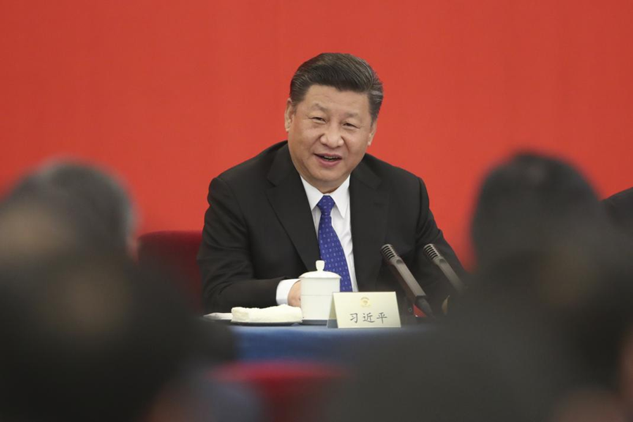 ??2018年3月4日下午,中共中央總書記、國(guó)家主席、中央軍委主席習(xí)近平看望參加全國(guó)政協(xié)十三屆一次會(huì)議的民盟、致公黨、無黨派人士、僑聯(lián)界委員,并參加聯(lián)組會(huì),聽取意見和建議。 新華社發(fā)(盛佳鵬 攝)