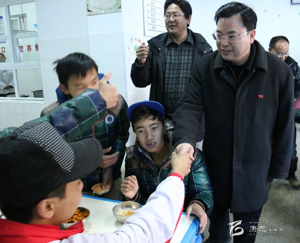 來到州特殊教育學校,學校校長澤仁郎吉告訴胡昌升,“地震來臨時,學校教師按照過去的地震應急演練,組織全校80多名學生有序撤離,無一人受傷。地震發(fā)生后,家長到學??吹胶⒆佣己馨踩?,非常放心”。胡昌升對該校在關(guān)鍵時刻及時有序疏散學生的做法給予了充分肯定。走進學校食堂,全校學生正在吃早飯,見到胡昌升一行,所有孩子都伸出手指,用手語向大家表示感謝。胡昌升對周圍的州教育局負責同志和學校老師說,學校要嚴密防控余震帶來的次生災害,確保大家安全。