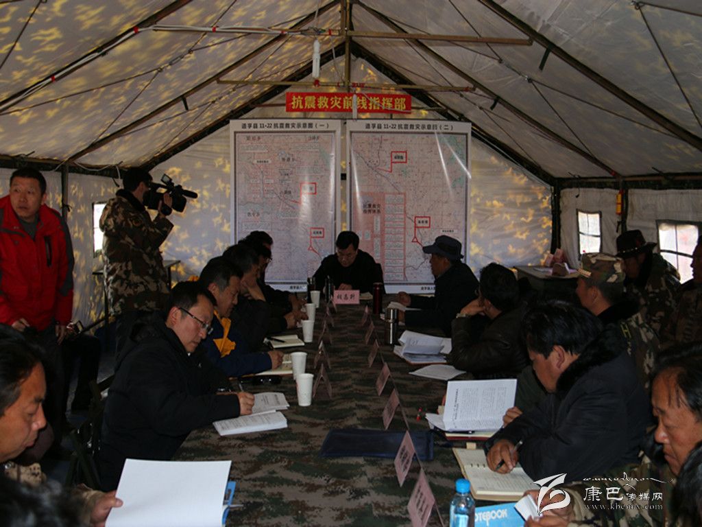 在前線指揮部,胡昌升主持召開(kāi)前指工作專(zhuān)題會(huì)議,傳達(dá)了省委書(shū)記王東明和省長(zhǎng)魏宏到我州地震災(zāi)區(qū)調(diào)研指示精神,聽(tīng)取前線指揮部辦公室和營(yíng)地各單位、康定縣、道孚縣關(guān)于抗震救災(zāi)工作的匯報(bào)。