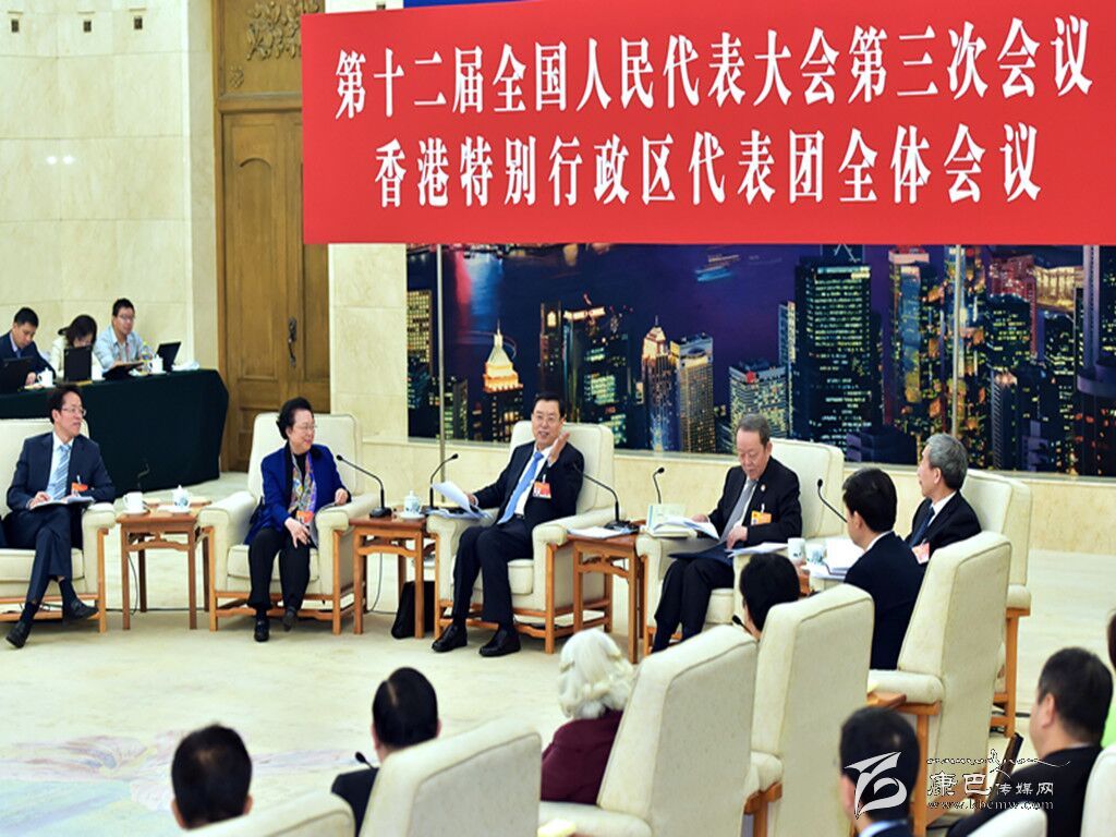 張德江在香港代表團、澳門代表團參加審議。張德江分別與香港、澳門地區(qū)全國人大代表進行了親切交流。他表示,過去一年,面對新情況新挑戰(zhàn),在中央政府和祖國內(nèi)地大力支持下,香港、澳門特區(qū)行政長官和特區(qū)政府與社會各界人士一道,同心協(xié)力、迎難而上,各項事業(yè)取得新成績,“一國兩制”實踐取得新進展。當前,香港、澳門正處于重要發(fā)展階段。希望香港、澳門地區(qū)全國人大代表引領社會各界人士,支持行政長官和特區(qū)政府依法施政,謀發(fā)展、謀長遠,促團結、促和諧,為保持港澳長期繁榮穩(wěn)定、實現(xiàn)中華民族偉大復興的中國夢增光添彩。在香港代表團,張德江指出,中央真誠希望香港特別行政區(qū)按照香港基本法和全國人大常委會決定的規(guī)定實行行政長官普選。這是中央的一貫立場,也是廣大香港同胞的殷切期盼。希望香港社會各界人士在行政長官和特區(qū)政府帶領下,求同存異,凝聚共識,力爭實現(xiàn)2017年行政長官普選目標,譜寫香港民主發(fā)展新篇章。在澳門代表團,張德江希望澳門社會各界認真貫徹好習近平主席在慶祝澳門回歸祖國15周年大會上的重要講話精神,在行政長官和特區(qū)政府帶領下,著力促進經(jīng)濟適度多元可持續(xù)發(fā)展,不斷改善民生,推動澳門“一國兩制”實踐在新的歷史起點上沿著正確方向走穩(wěn)、走實、走遠。