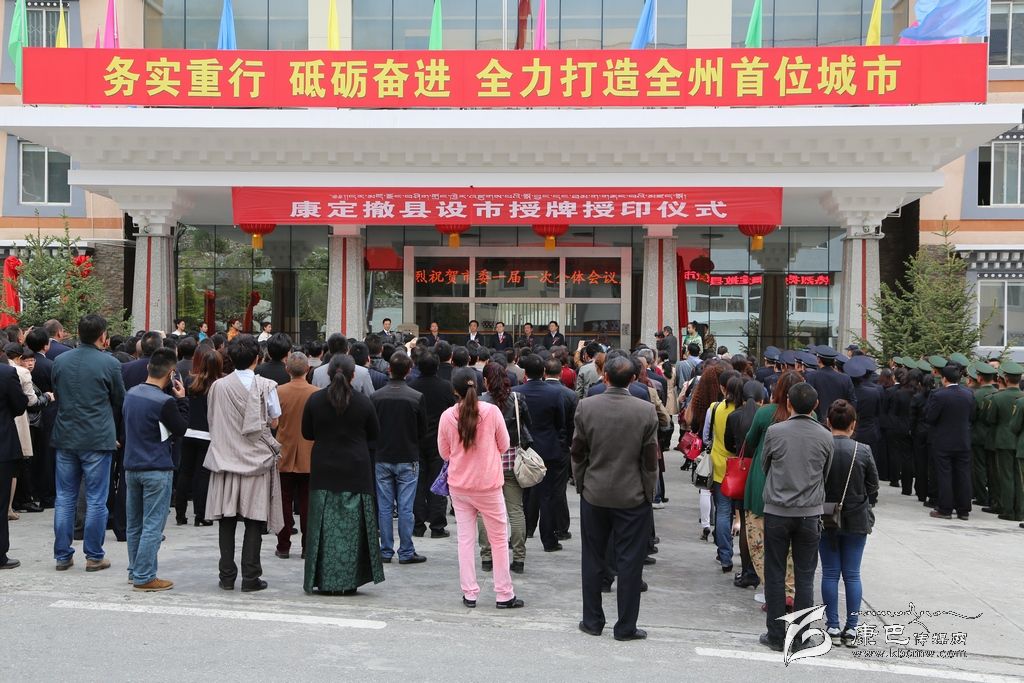 康定從1991年開(kāi)始啟動(dòng)撤縣設(shè)市申報(bào)工作,經(jīng)過(guò)24年的不懈努力和積極爭(zhēng)取,2015年2月17日,經(jīng)國(guó)務(wù)院批準(zhǔn),國(guó)家民政部批復(fù),同意撤銷康定縣設(shè)立康定市,康定成為我省藏區(qū)首個(gè)縣級(jí)市。