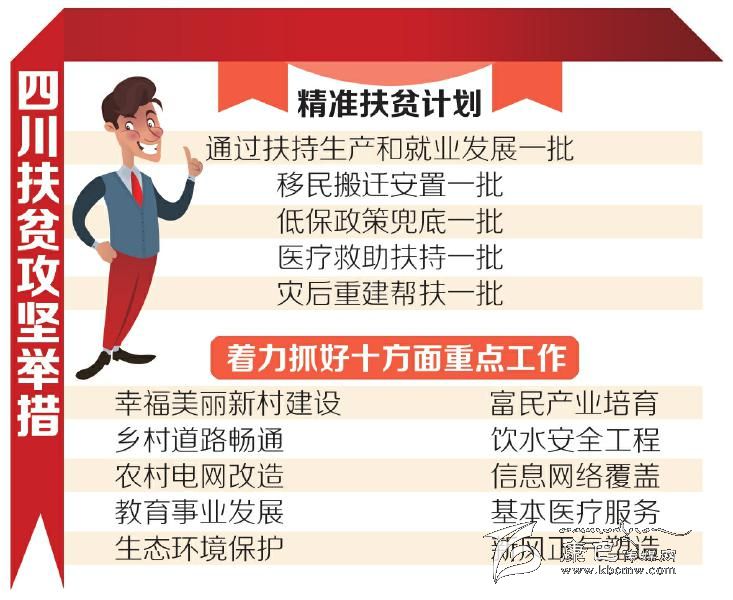 2014年,四川已摸清家底:全省共有11501個貧困村、88個貧困縣,168.48萬戶貧困戶和497.65萬貧困人口。四川省扶貧和移民局副局長劉兵說,目前正進入精準扶貧、精準脫貧的“攻堅拔寨”關(guān)鍵時期。7月初,四川出臺聚焦各類貧困人口的精準扶貧計劃,即通過扶持生產(chǎn)和就業(yè)發(fā)展一批、移民搬遷安置一批、低保政策兜底一批、醫(yī)療救助扶持一批、災(zāi)后重建幫扶一批。