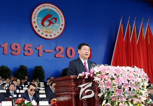 圖為:2011年7月19日,西藏和平解放60周年慶祝大會在拉薩舉行。習(xí)近平在慶祝大會上講話。