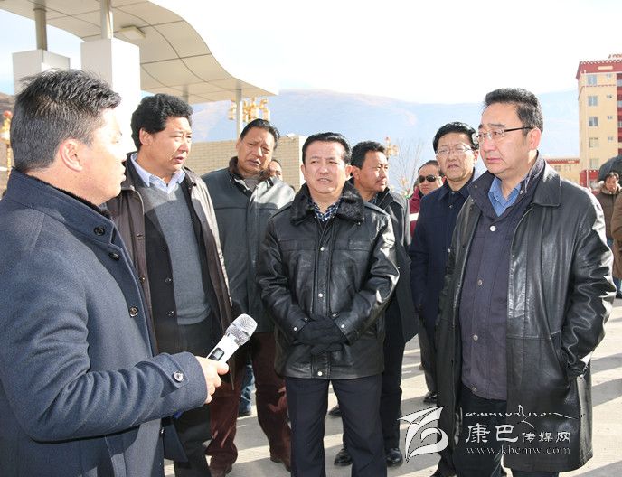 圖為李康、益西達瓦與參會人員在爐霍縣考察城市建設(shè)。