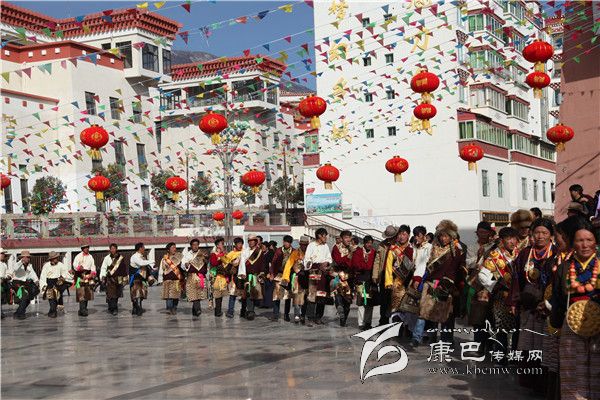 大年初三早上十點(diǎn),鄉(xiāng)城縣城的社區(qū)群眾穿戴盛裝在香巴拉休閑廣場(chǎng)圍成大圓圈,跳起了歡快的鍋莊。隨著歌師的唱詞,男女舞者手牽著手踏著節(jié)拍邊唱邊跳,讓節(jié)日的鄉(xiāng)城縣城充滿了喜慶的氣氛。