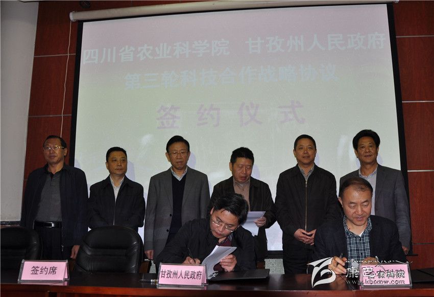 會上,州委常委、農(nóng)工委主任楊凱作“院州”合經(jīng)驗(yàn)交流,省農(nóng)科院院長李躍建與州政府副州長杜德清簽署“四川省農(nóng)業(yè)科學(xué)院甘孜州人民政府第三輪科技合作戰(zhàn)略協(xié)議”。