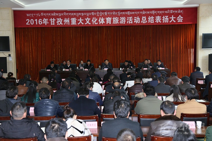 本網(wǎng)訊(記者 楊杰 文/圖)12月20日下午,我州2016年重大文體旅游活動(dòng)總結(jié)表?yè)P(yáng)大會(huì)在康定召開。會(huì)議對(duì)今年我州舉辦的“四川甘孜首屆山地旅游節(jié)”“第九屆康巴藝術(shù)節(jié)”“第七屆中國(guó)康定國(guó)際情歌音樂(lè)節(jié)”等一系列重大文體旅游活動(dòng)進(jìn)行了總結(jié),并對(duì)活動(dòng)中的先進(jìn)集體和優(yōu)秀個(gè)人進(jìn)行了表?yè)P(yáng)。