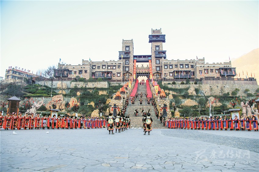 2月16日,學(xué)習(xí)組成員走進(jìn)茂縣感受中國古羌城原汁原味的開城門儀式。中國古羌城地處茂縣岷江西岸金龜包、銀龜包之間,坐西朝東,背靠水西,腳抵岷江,面向九鼎圣山,頭枕藍(lán)天白云,莊嚴(yán)雄偉,氣勢恢宏。中國古羌城保持羌族原有的建筑風(fēng)貌、民風(fēng)民俗、祭祀禮儀,充分體現(xiàn)羌文化的原生態(tài)環(huán)境和羌民族的生息特點(diǎn),中國古羌城是羌族人民生產(chǎn)和生活的活態(tài)保護(hù)地,物質(zhì)文化和非物質(zhì)文化傳承的新載體,也是羌文化生態(tài)保護(hù)核心地、羌民族朝拜圣地、羌文化旅游目的地。作為目前全國乃至世界唯一的羌文化最大核心展示地,古羌城集文化傳承保護(hù)、休閑體驗(yàn)、游樂觀光為一體,淋漓盡致地展現(xiàn)了羌族古今的發(fā)展和珍貴的文化寶藏。