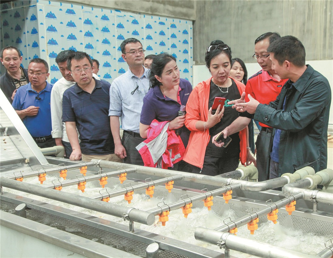 圖為現(xiàn)場(chǎng)會(huì)與會(huì)人員在雅江縣松茸產(chǎn)業(yè)園區(qū)學(xué)習(xí)參觀。