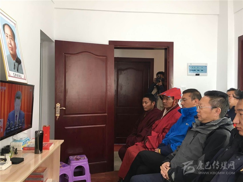 州財(cái)政局干部與聯(lián)系寺廟僧侶一同觀看十九大開幕會。