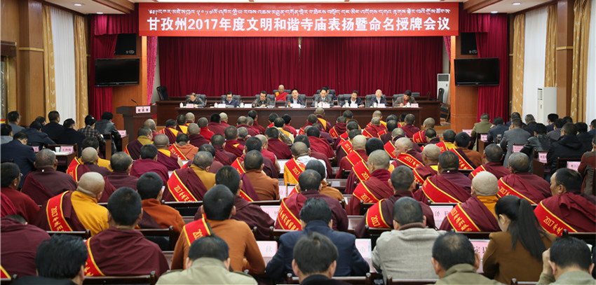 本網(wǎng)訊 近日,州委、州政府召開會議為2017年度文明和諧寺廟命名授牌,并表揚(yáng)愛國守法模范僧尼。州委書記劉成鳴出席會議并講話。他希望,廣大僧尼對標(biāo)“政治合格、愛國愛教、遵規(guī)守法、持戒精修、團(tuán)結(jié)進(jìn)步、利益眾生”六個標(biāo)準(zhǔn)做好表率,教育引導(dǎo)廣大僧尼和信教群眾“感黨恩、愛祖國、守法制、奔小康”,積極推動宗教界與全州脫貧奔康和長治久安進(jìn)程相協(xié)調(diào)、與社會主義社會相適應(yīng)。州委副書記、州長肖友才主持會議。州人大常委會主任李康、州政協(xié)主席向秋出席。