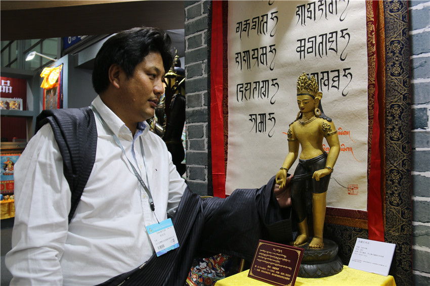 “三天來,市民了解工藝品的多,購買的不是很多,但也有采購意向協(xié)議的?!比斩鄬τ浾哒f,作為獨具特色的藏族非物質文化遺產,為搶救這一特殊工藝技術,我們公司在州委、州政府和縣委、縣政府以及州縣兩級文化部門的關心支持下,從2000年開始恢復董察花色青銅的加工工藝,開發(fā)了上百種精神文化類產品、生活使用類產品、美飾擺設類產品以及演奏樂器類產品。