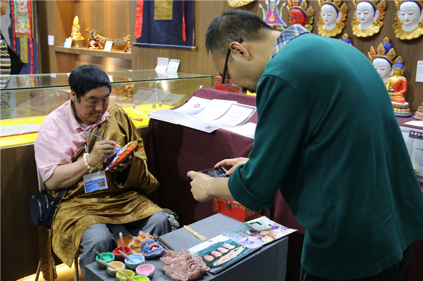 記者又分別走訪幾家參展商,鄉(xiāng)城縣文化旅游局羅絨扎姆說,我們的十二生肖(唐卡)已經(jīng)賣出六幅多了,咨詢的也接二連三,有的訂了單,還有的有意向。接著,部分商家道出心理話。新龍藥泥面具傳承人四龍降澤說, 11日就賣了1700多元;瀘定縣冰川水晶加工廠涂娟說,兩天銷售凈賺10000元;而藏藝通旅游文化有限公司行政助理格桑達(dá)美說,這兩天圍巾和小的掛件銷售量比較好,收入接近10000元,隨著周末的到來,人流量會逐步增加,相信到那時(shí)我們的銷量也會攀升。