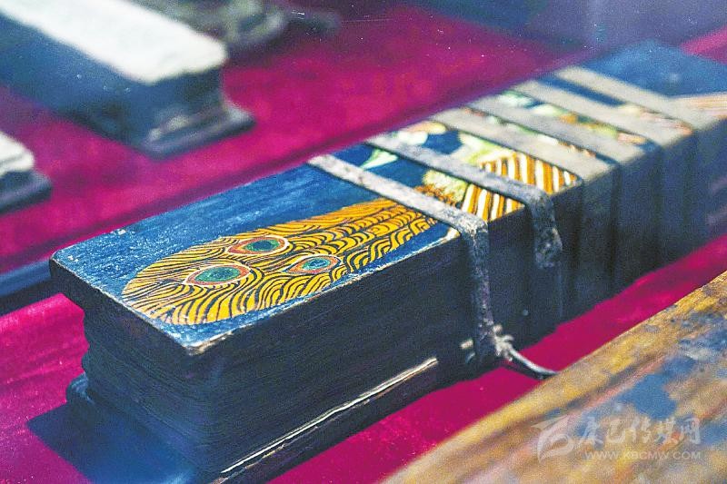在展覽現(xiàn)場,擺放著一些格薩爾的藏文文獻資料,與傳統(tǒng)漢語古籍裝幀不同,藏文典籍主要采用梵夾裝形式,俗稱長條本。此次展出的包括格薩爾梵夾裝的手抄本、伏藏本、木刻本以及近六十年來正式出版的各種圖書等等,囊括了數(shù)百部格薩爾王史詩。