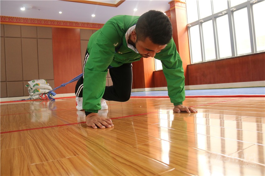 押加選手正在進(jìn)行力量訓(xùn)練。