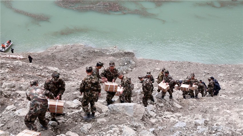 “金沙江上次堰塞湖時,我們到現(xiàn)場走了7個小時的路,大家都很饑渴,但沒有喝的水,只有在堰塞湖邊舀了一些渾水上來直接喝了。第二天一大早,看到生公村委會主任牛麥扎西背著一桶水來時,我當(dāng)時眼淚就流下來了,在那么難行的山路上背著足足50斤的水過來,可想是多么的不容易?!备椅棠愤€記得,60多歲的則巴村委會主任澤仁牛麥,和其他小伙子一樣,每天背著幾十斤重的物資走在山路上。