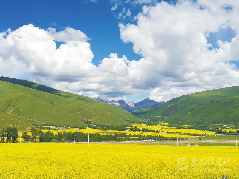 成都市郫都區(qū)對(duì)口援建的甘孜州道孚縣協(xié)德鄉(xiāng)萬(wàn)畝油菜基地一片生機(jī)盎然。 陳凱 攝