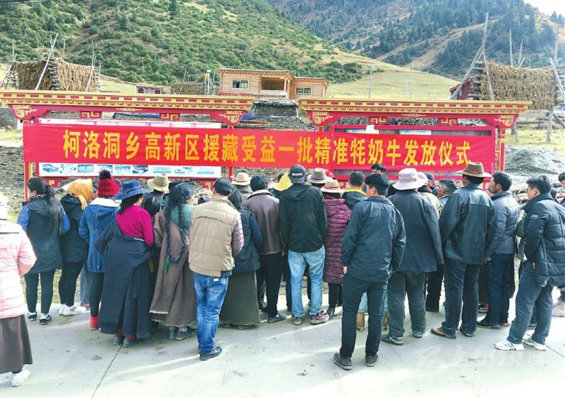 成都高新區(qū)對(duì)口支援甘孜州德格縣柯洛洞鄉(xiāng)扶貧牦奶牛發(fā)放現(xiàn)場(chǎng)。余定華 攝