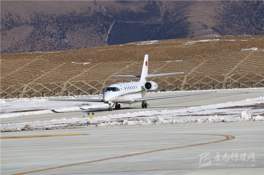 銀鷹穿云飄彩帶,嘯聲弄雪震碧空。12月8日上午11時20分,在甘孜縣來馬鎮(zhèn)和德格縣錯阿鎮(zhèn)交界的靜謐群山中,一陣陣劃破天際的引擎轟鳴聲由遠及近,一架中國民用航空飛行校驗中心“獎狀C680”型校驗飛機在甘孜格薩爾機場跑道平穩(wěn)著陸,并安全??吭谕C坪?!翱当备沟亍备首慰h迎來“空中訪客”。