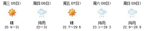 5日開始一直到9日都是多云到晴的天氣,日最高氣溫27℃左右。每天都有陣雨(小雨),考生出行應(yīng)防山地災(zāi)害。