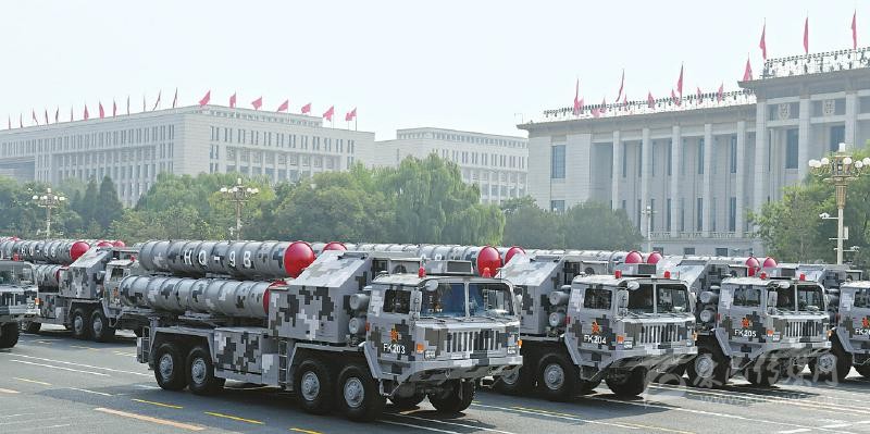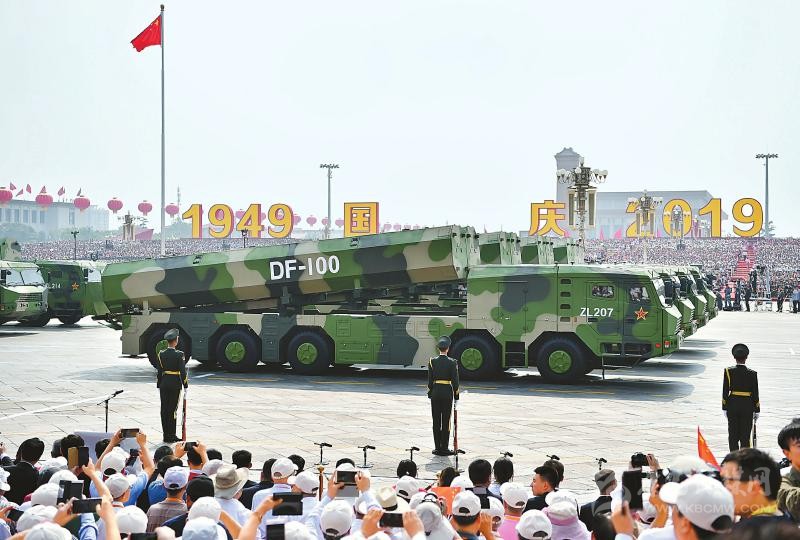 東風-41核導彈方隊接受檢閱。 新華社記者王曄攝