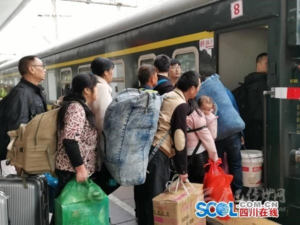 這又是一趟不普通的列車,是巴中市組織的“郵儲銀行號”在粵農(nóng)民工返鄉(xiāng)專列,車上大部分都是巴中籍農(nóng)民工,約有1500余人,他們于1月18日10時15分從廣州出發(fā),最終經(jīng)過33個小時,跨越1500余公里的行程回家。