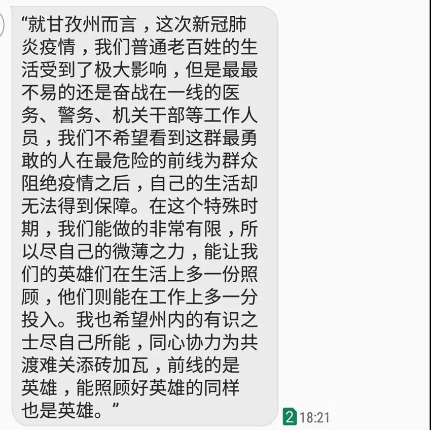 加勇一邊從兜里拿出1000元往鄉(xiāng)干部手中遞,一邊說到:“這個(gè)是我跟我兒子捐給國(guó)家的,錢不多,我們兩人一個(gè)人500,麻煩你們鄉(xiāng)上幫到捐一下。以前,我在擔(dān)任村干部期間,國(guó)家給了我和家人很多關(guān)懷和照顧,現(xiàn)在我們?nèi)袊?guó)都在齊心協(xié)力防治新型冠狀病毒感染的肺炎疫情,作為一個(gè)老黨員,還是原來(lái)的村支部書記,我們一家人想為國(guó)家盡點(diǎn)力,這個(gè)錢不多,但是我想能有捐一點(diǎn)算一點(diǎn)嘛。”