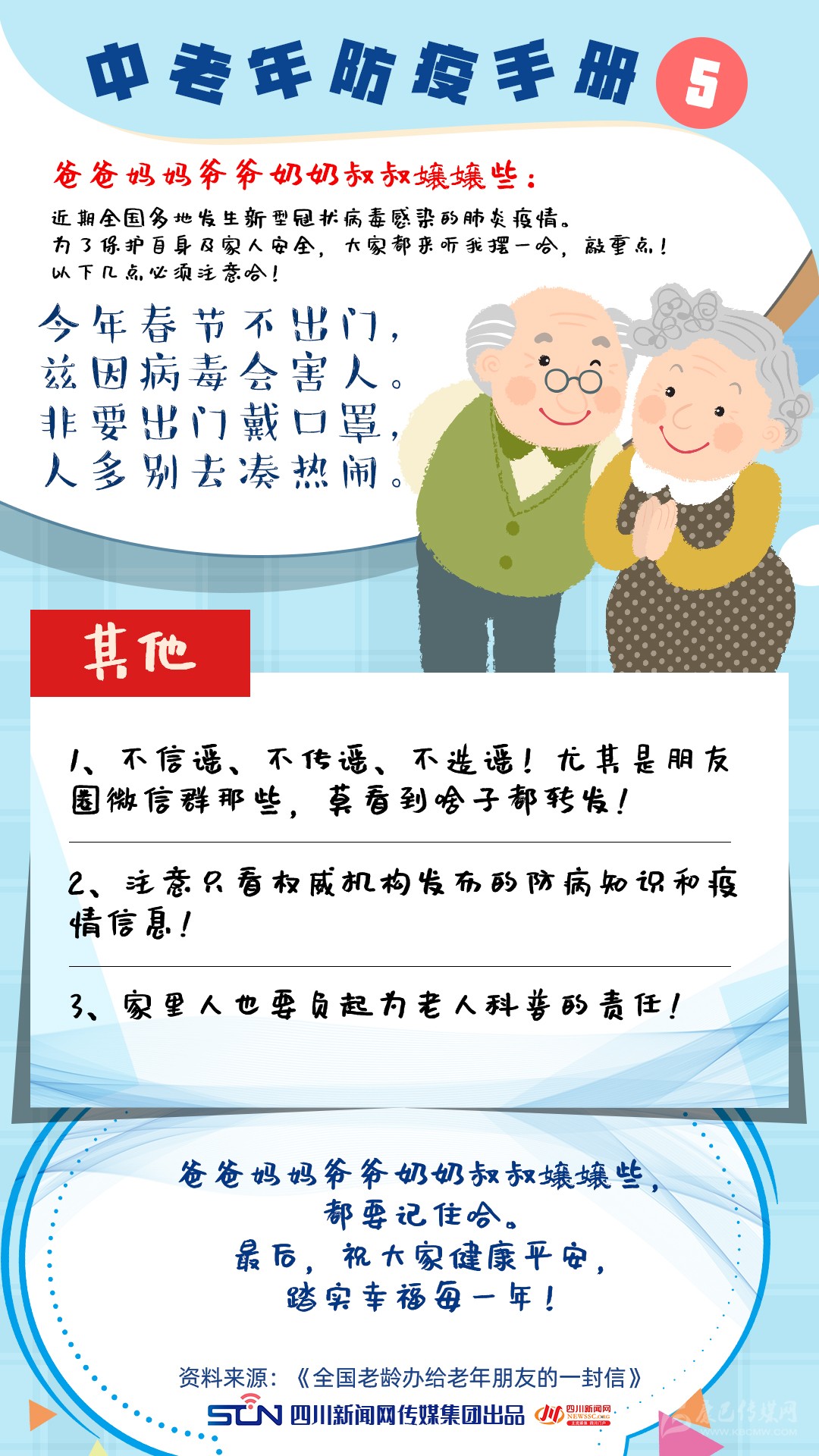 對此,為了讓“這屆難帶的父母”進(jìn)一步認(rèn)識新型冠狀病毒感染的肺炎疫情,四川新聞網(wǎng)特別推出《中老年防疫手冊》,呼吁老年人重視疫情,科學(xué)防控,做好自己健康的第一責(zé)任人。還在等什么,快轉(zhuǎn)給你那“倔強(qiáng)”的父母吧!