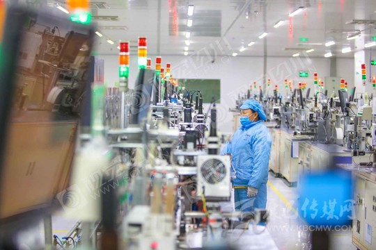 遂寧市經(jīng)開區(qū)藍彩電子智能信息化車間,工人正在生產(chǎn)線開足馬力加緊生產(chǎn)。